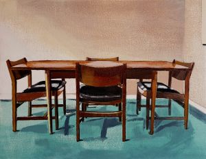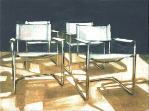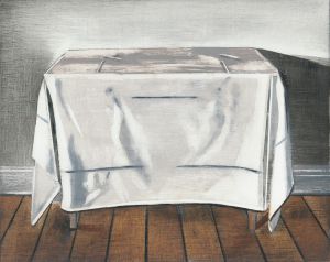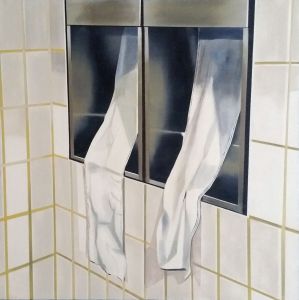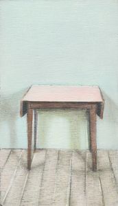 An investigation into the hidden human histories behind seemingly insignificant objects. Often ignored, they bear witness to sensuous activity, be it remembered, lived, forgotten, or mythologised. In these modestly scaled works, the depicted objects are presented dislocated from their conventional domestic settings and isolated within an intangible space. The objects appear as unadorned formal arrangements in a painterly restaging of the interrelationship of material, image, object and time.