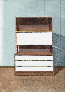 An investigation into the hidden human histories behind seemingly insignificant objects. Often ignored, they bear witness to sensuous activity, be it remembered, lived, forgotten, or mythologised. In these modestly scaled works, the depicted objects are presented dislocated from their conventional domestic settings and isolated within an intangible space. The objects appear as unadorned formal arrangements in a painterly restaging of the interrelationship of material, image, object and time.